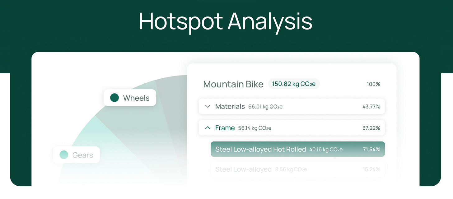 Michael’s challenge is to design tools that don’t just report emissions but nudge teams to change how they operate. That’s where features like hotspot analysis come in, visuals that show exactly where emissions are concentrated (often in raw materials) and where action will make the biggest dent.